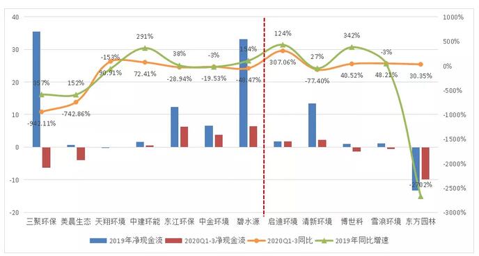 环保民营企业通过股权转让、表决权委托、非公开发行股票等方式牵手国资后,国资对民营企业的援助效应表现不一,2020年前三季度,66%的企业在引入国资后业绩净利润仍为负增长;引入国资当年,民营企业现金流几乎均出现好转,实现正增长,但之后好转的可持续较弱。