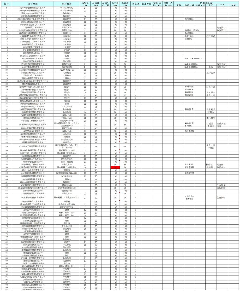 好博体育环保科技现有供应商206家,按其影响程度划分为高、中、低风险供应商,其中低风险比为98%。为了更好的对供应商进行管理,制定有《供应商管理办法》、《供应商绩效评估表》、《供应商准入申批》,按照文件要求制定供应商审计计划并按时进行审计,高中风险供应商审计率为100%。能够确保我司供应商管理要求,降低物料质量风险,保证采购的物料符合质量标准要求。