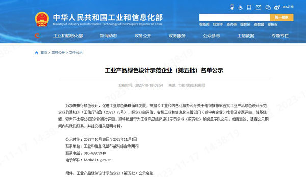 中华人民共和国工业和信息化部官方网站于10月18日发布了《工业产品绿色设计示范企业(第五批)名单公示》,经过初审筛选、复审答辩,好博体育科技成功获得工业产品绿色设计示范企业荣誉称号。